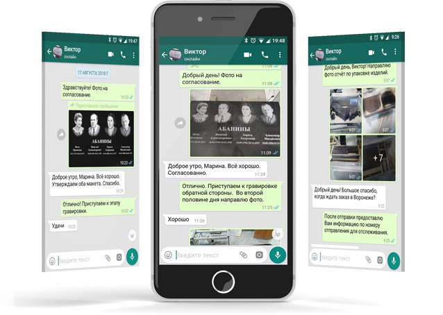 Получайте отчеты после изготовления памятника, после гравировки, а также перед отправкой в любой город России. Контролируете изготовление памятника в реальном времени